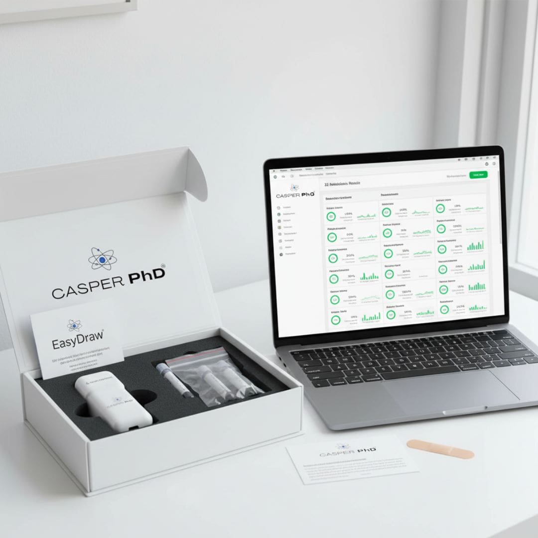 -32 biomarker longevity test — Metabolic health, heart health, inflammation, hormones, thyroid, nutrition.
